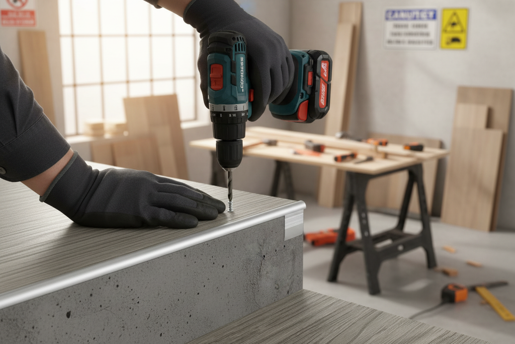 - Drill holes in the stair surface where necessary
