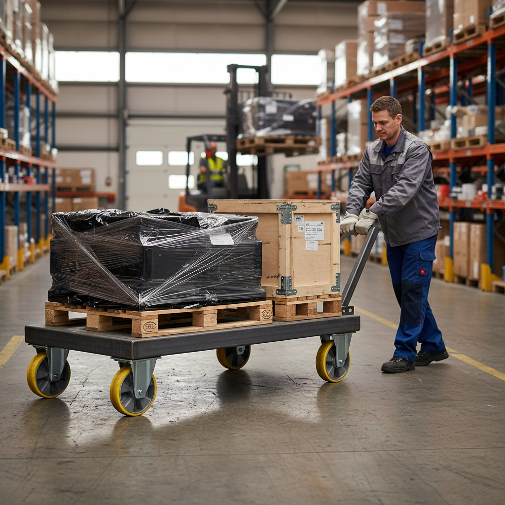 The tyre is made of durable polyurethane, designed for smooth rolling and to protect flooring.
