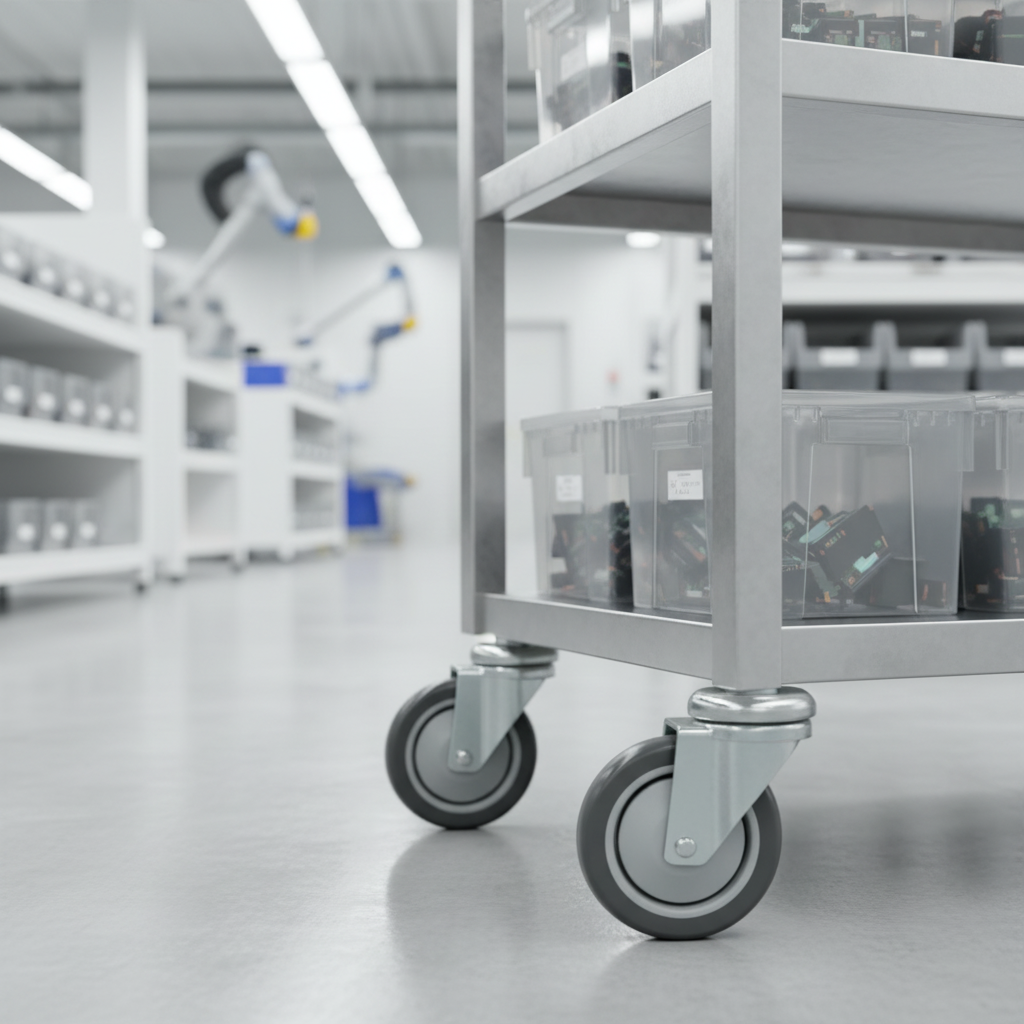 The 80mm Diameter Grey Polyurethane Anti-Static Wheel is designed for professional use, providing excellent mobility and support for various applications. This wheel is non-marking, ensuring that surfaces remain clean while providing smooth movement.