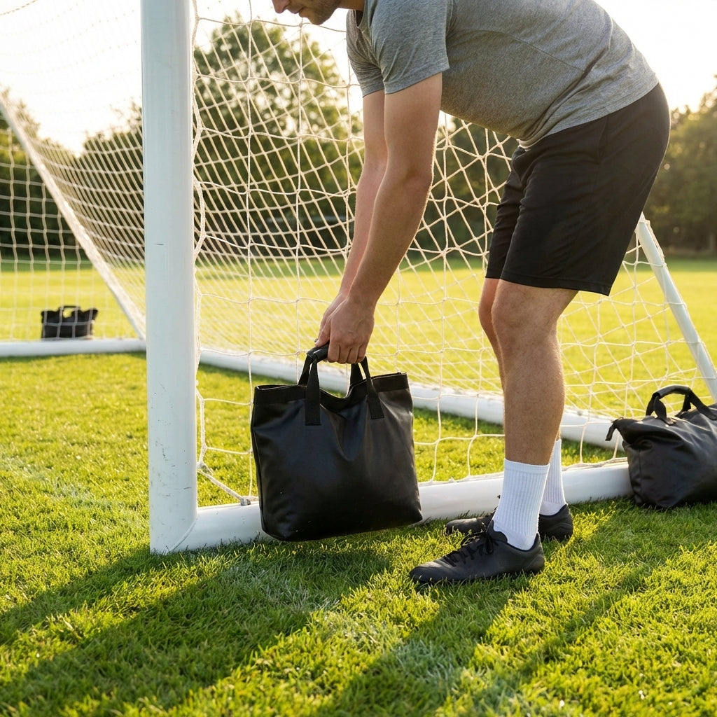 Secure your football goals effortlessly with this robust sandbag, designed to hold up to 15kg of sand. Made from reinforced heavy-duty PVC, it's perfect for all weather conditions and surfaces.