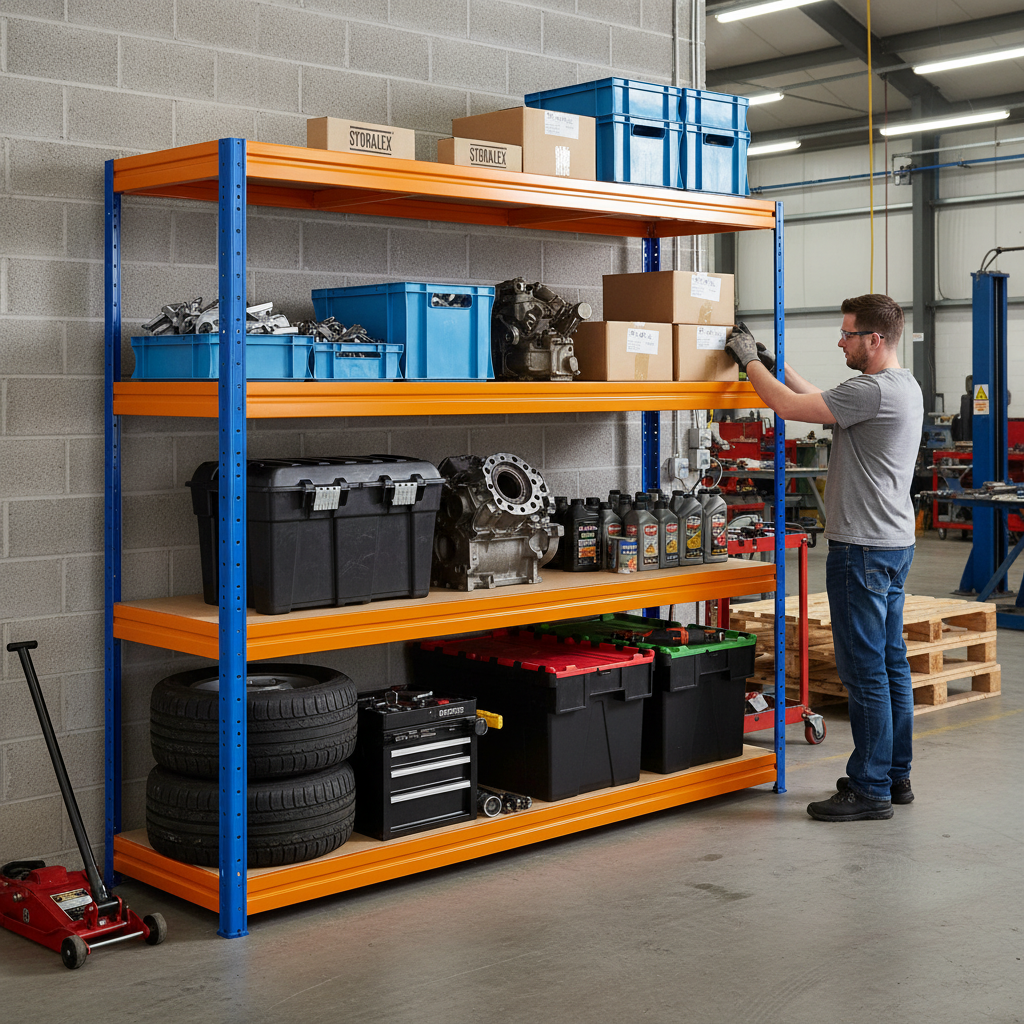 - Industrial grade, heavy duty garage shelving. Each level can hold up to 600kg per level (at 1600mm wide, other widths vary) evenly distributed.