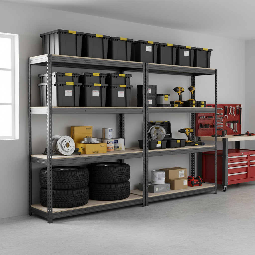 These extra wide, heavy duty shelves are the quick and easy way to clean up and organize your garage. Thanks to the smart boltless assembly system, they’ll be ready to use in minutes.