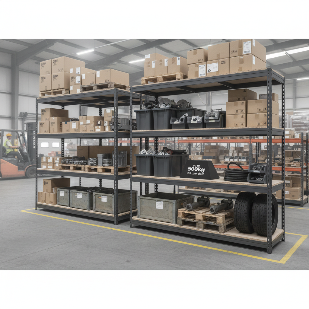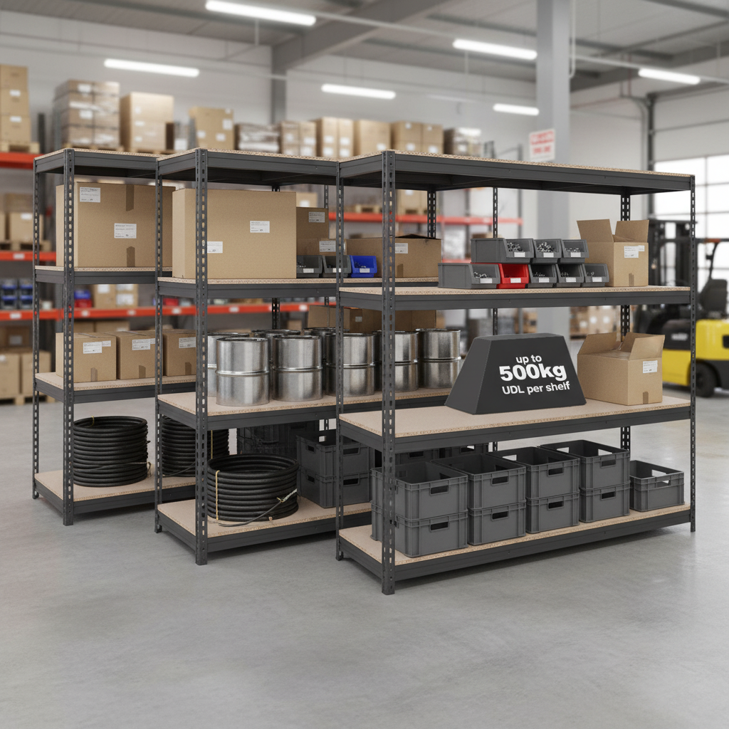 Heavy Duty Industrial Shelving - 2200mm High - 500kg Load Capacity - Grey