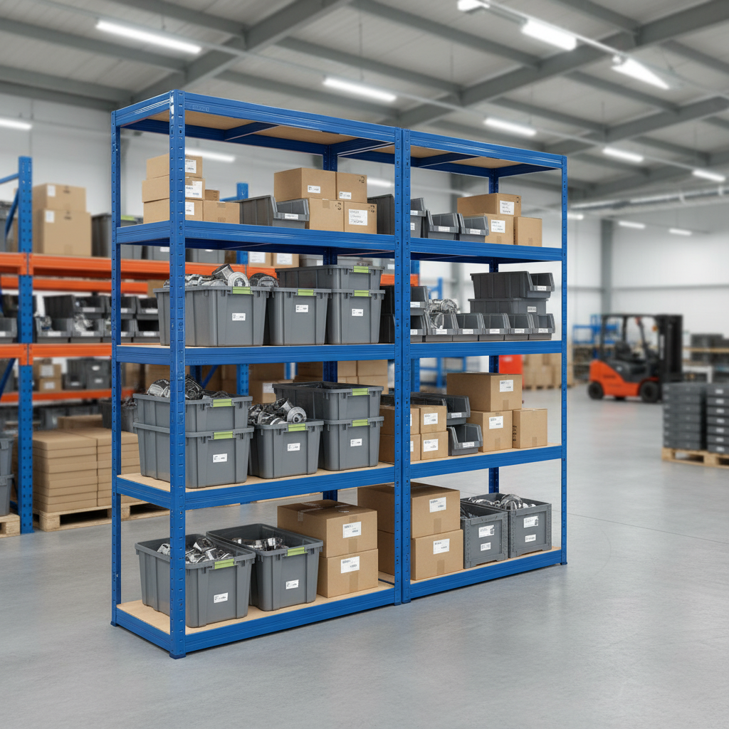 Finally, enjoy an organised and accessible garage or stockroom! These sturdy metal heavy duty shelving units offer a quick and easy way to clean up and organise your storage space. Thanks to the smart boltless assembly system, they’ll be ready to use in minutes.