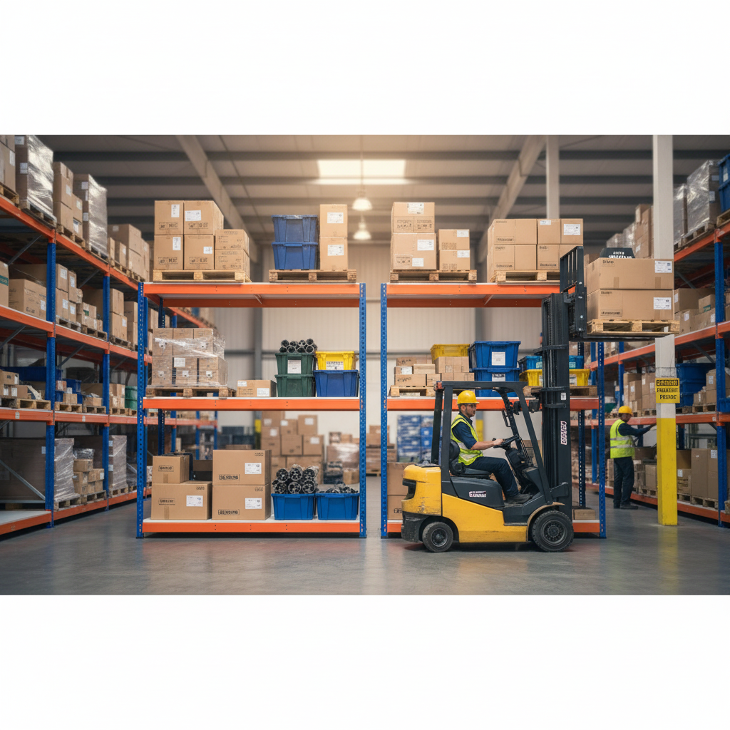 Premium Industrial Shelving - 2440mm High - 800kg Capacity - Melamine - Blue & Orange