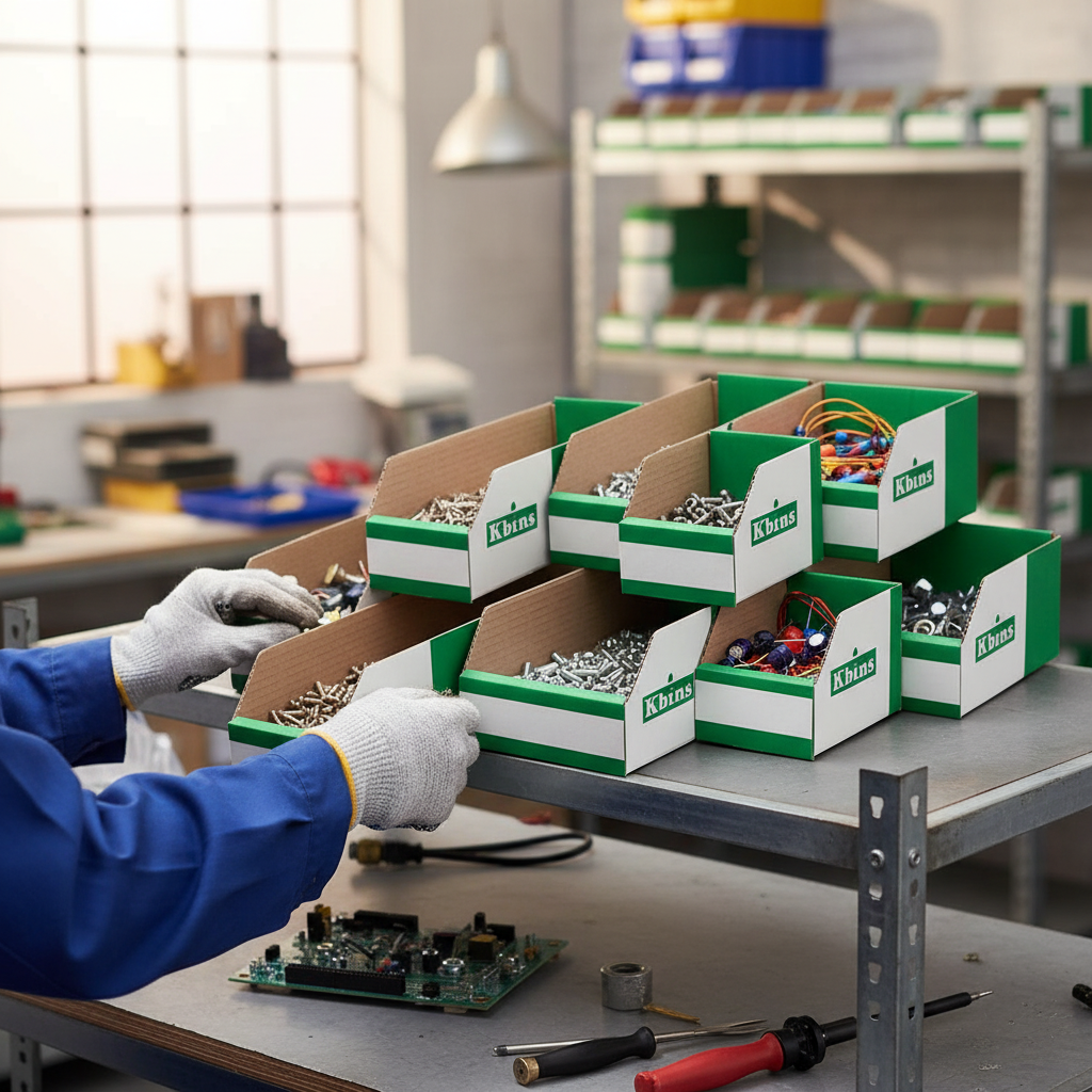 - 100mm high flat pack cardboard parts bins available in a multitude of sizes.