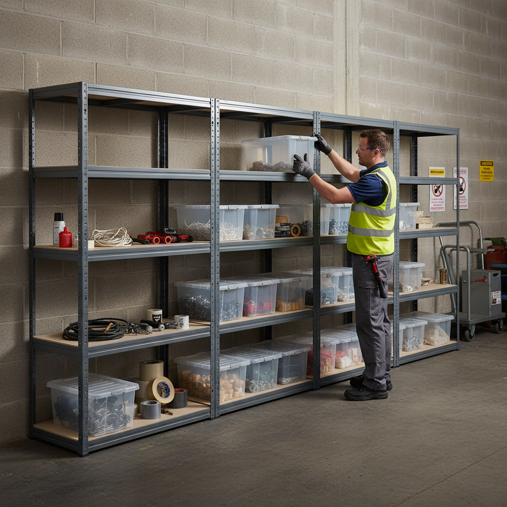 - 4x Heavy Duty Shelving and Plastic Storage Box Bundle
