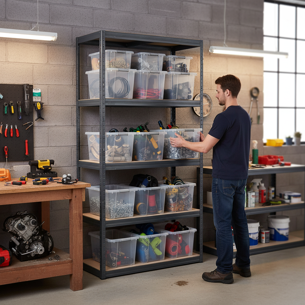 Finally, enjoy an organised and accessible garage or stockroom! These sturdy shelves are the quick and easy way to clean up and organise your storage space. Thanks to the smart boltless assembly system, they’ll be ready to use in minutes.
