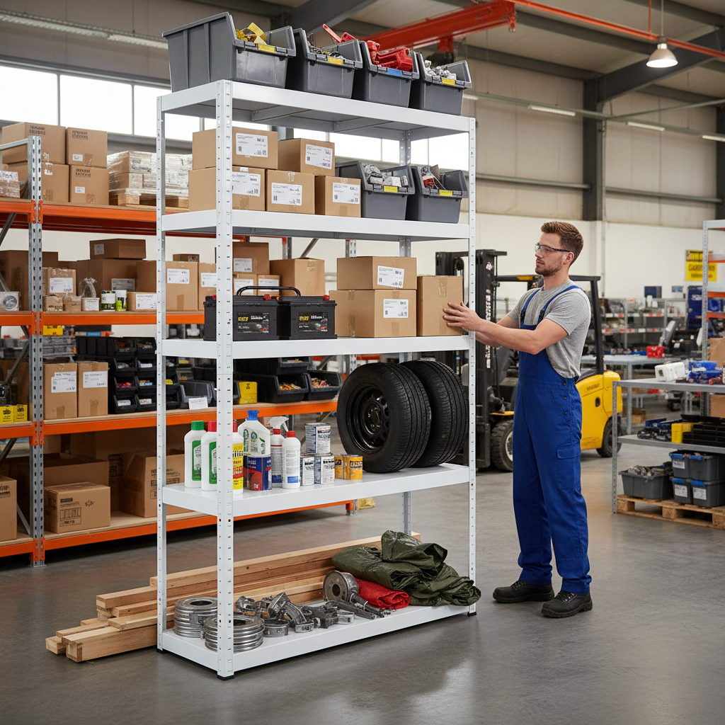 Heavy Duty Metal Shed Shelving - 1800mm High - 90/130kg Capacity - White