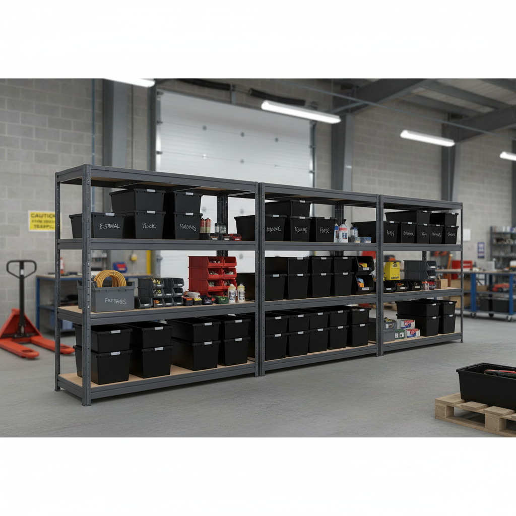 - Robust and sturdy heavy duty shelving units paired with strong, long-lasting storage boxes.