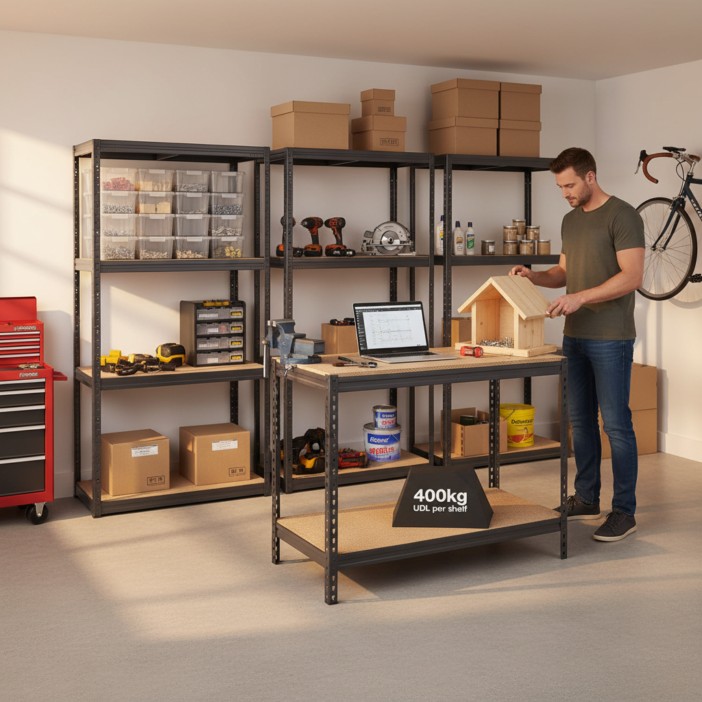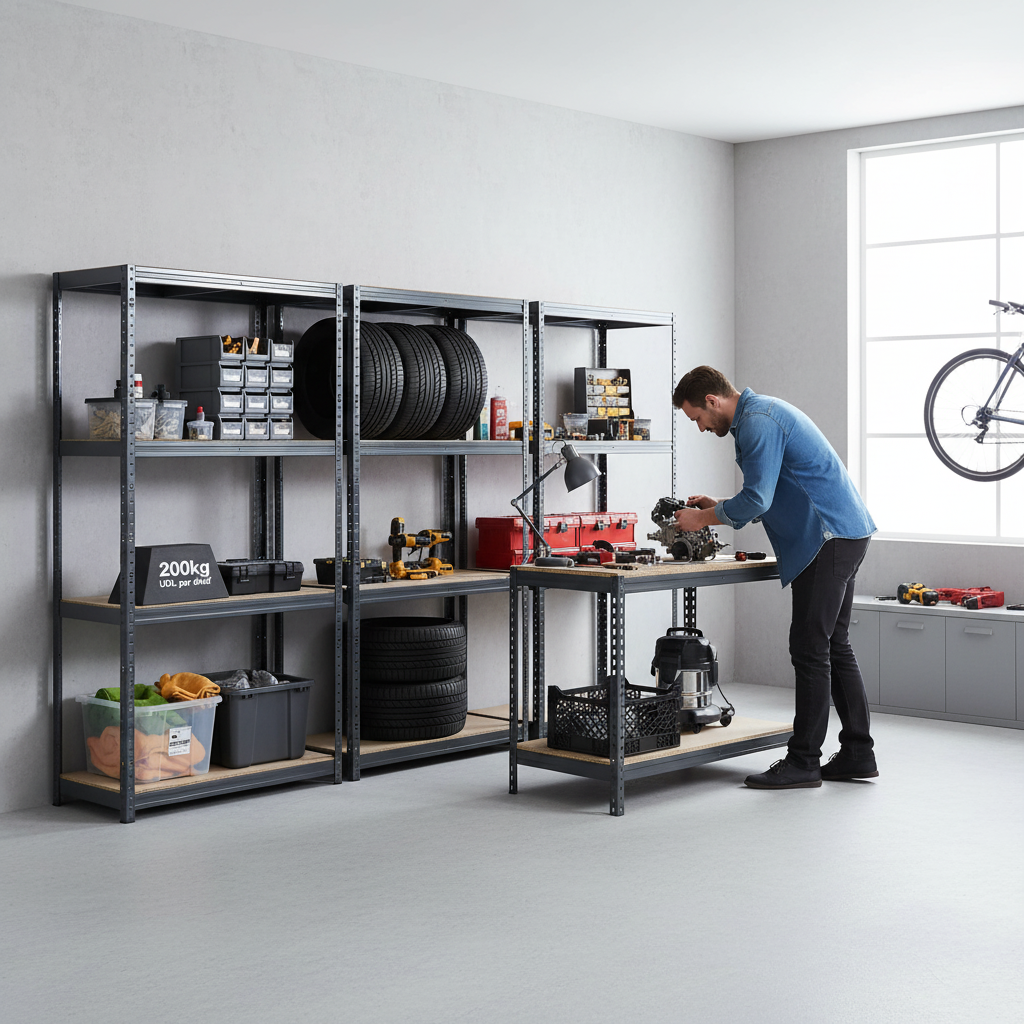 Finally, enjoy an organised and accessible garage or stockroom! These sturdy shelves are the quick and easy way to clean up and organise your storage space. Thanks to the smart boltless assembly system, they’ll be ready to use in minutes.