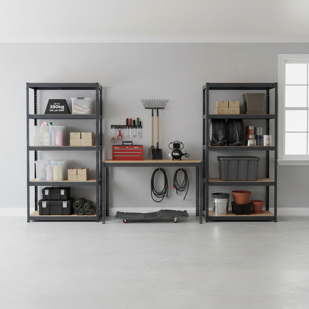 Finally, enjoy an organised and accessible garage or stockroom! These sturdy shelves are the quick and easy way to clean up and organise your storage space. Thanks to the smart boltless assembly system, they’ll be ready to use in minutes.
