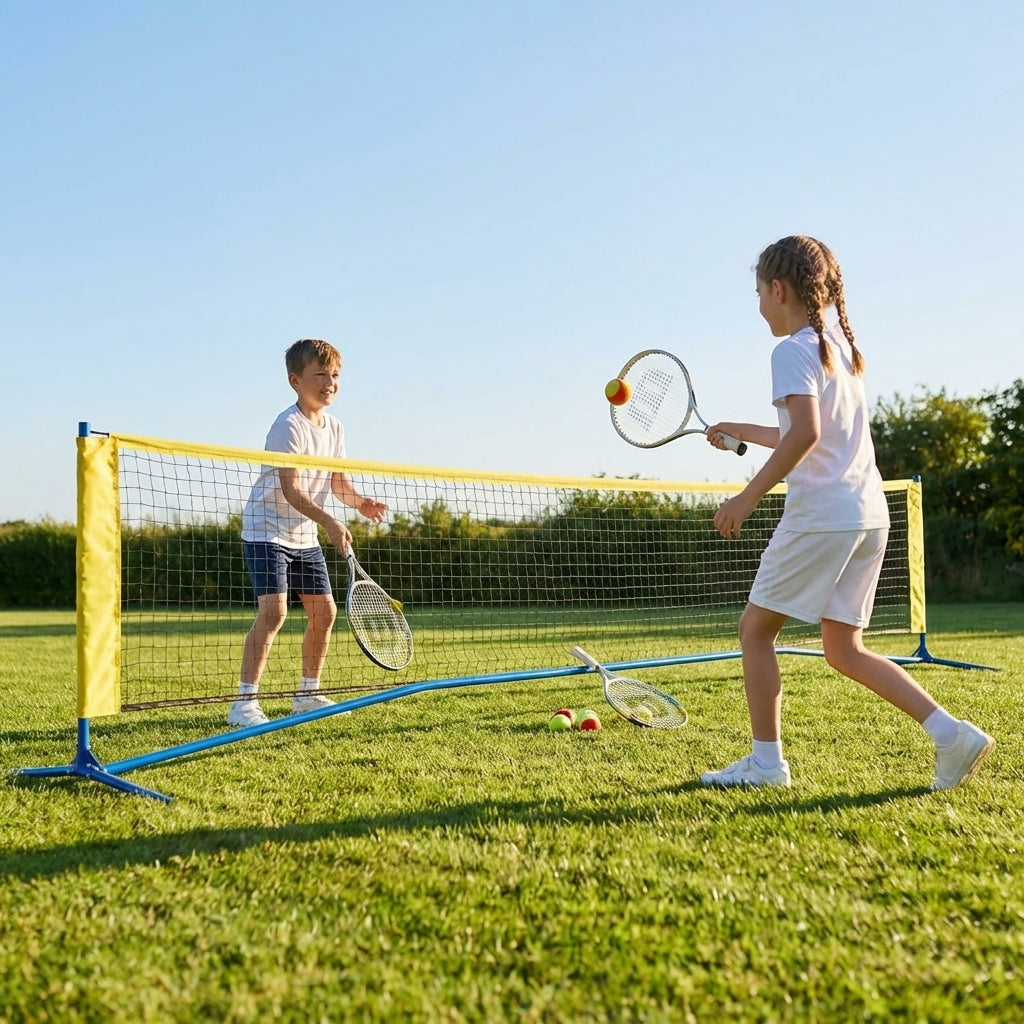 This versatile mini tennis net set is perfect for families, schools, and sports clubs. Fully portable and easy to set up, it includes high-quality rackets and ITF-approved tennis balls, ensuring a great experience for players of all levels.