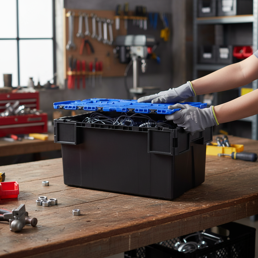These premium tote boxes are designed for durability and practicality, featuring attached lids that ensure secure storage. They are manufactured from high-quality reprocessed polypropylene, making them suitable for a variety of applications across different industries. The temperature resistance from -20°C to +40°C means they can be used in various environments without compromising their integrity. The stackable design allows for efficient storage, while the nesting feature saves space when not in use.
