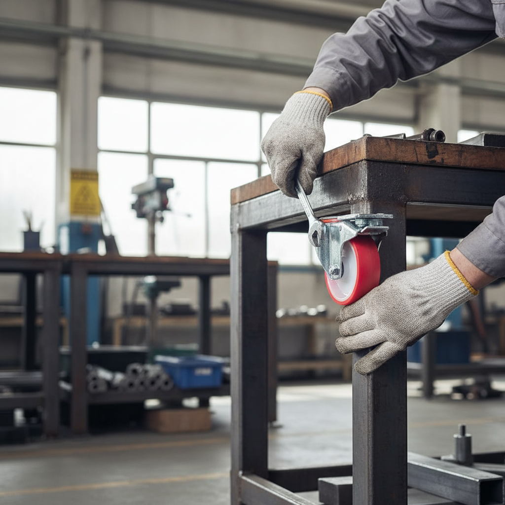 This 100mm Heavy Duty Braked Swivel Bolt Hole Castor features a robust red poly material with a white nylon center and roller bearing. Engineered for durability and high performance, this castor is ideal for heavy-duty applications.