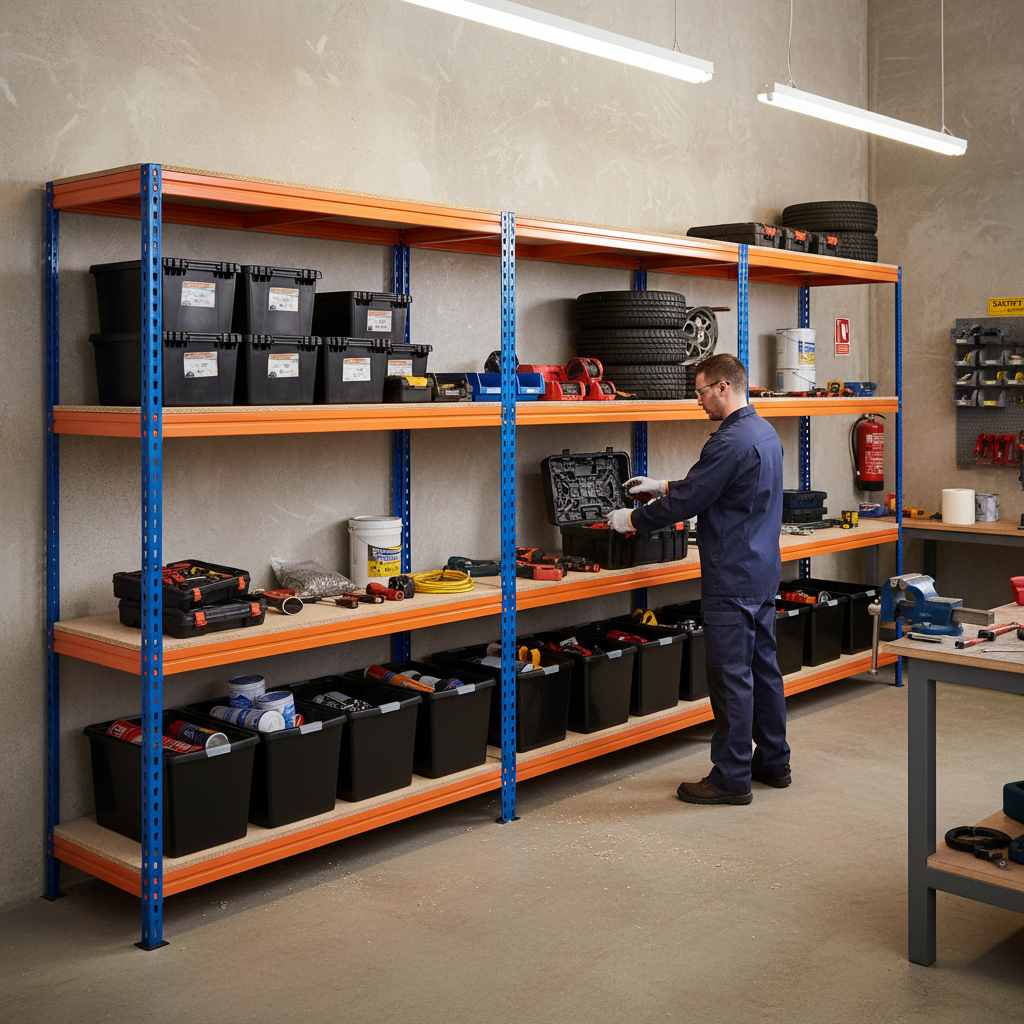 These extra wide, heavy duty industrial shelves are the quick and easy way to clean up and organise your workspace. Thanks to the smart boltless assembly system, they’ll be ready to use in minutes.