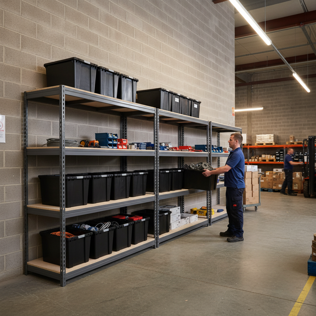 - Four pack of our best-selling heavy duty shelving units with strong, robust storage boxes.