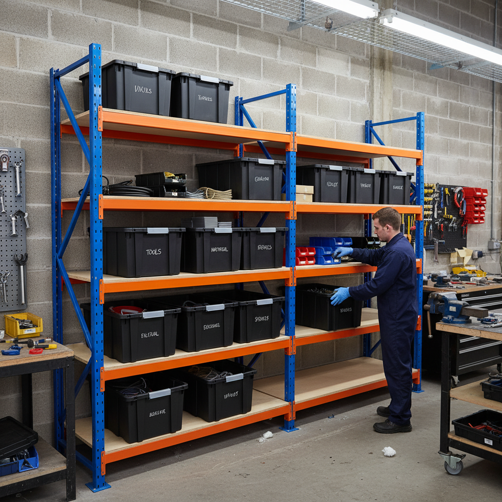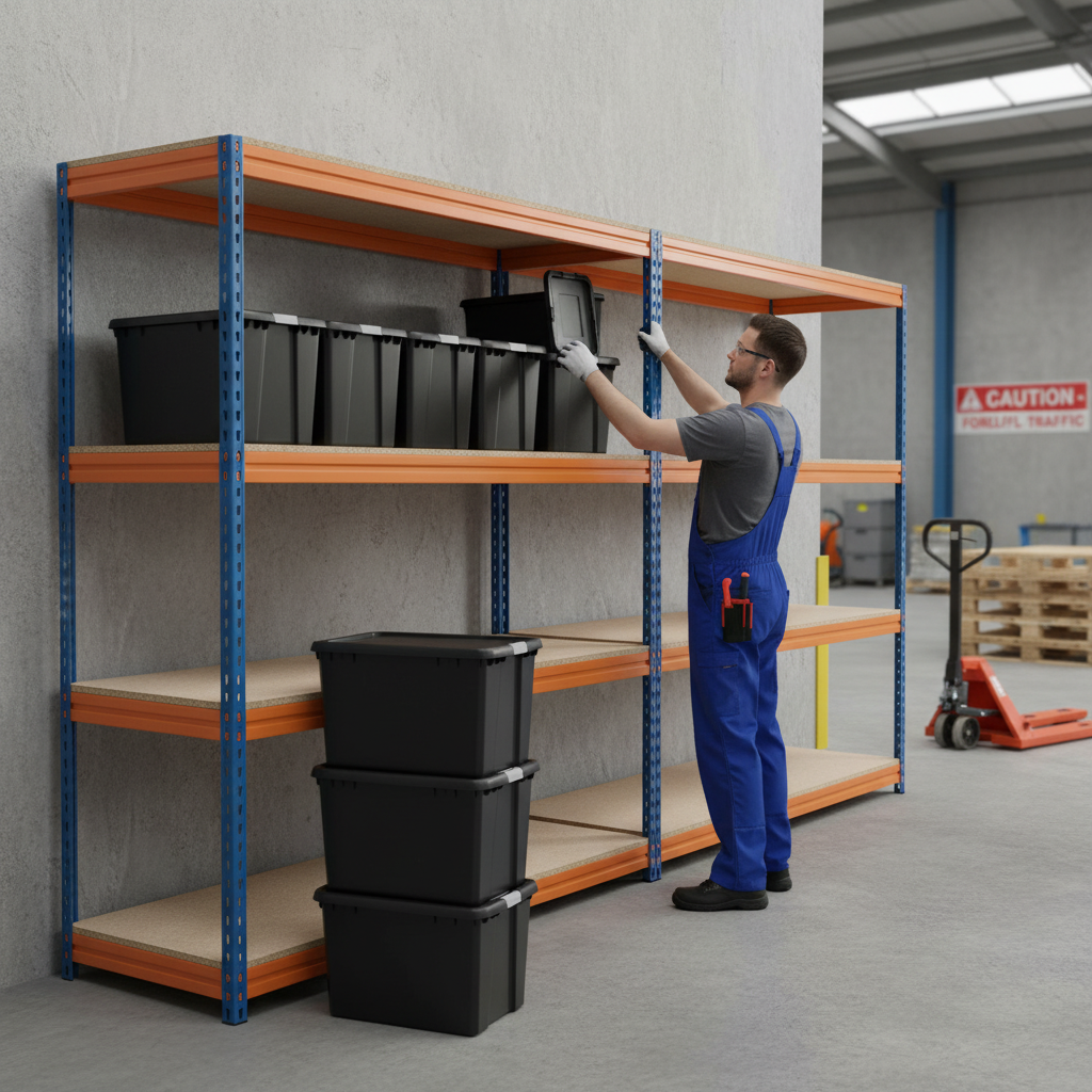 - Four units of our best-selling heavy duty shelving with robust storage boxes.