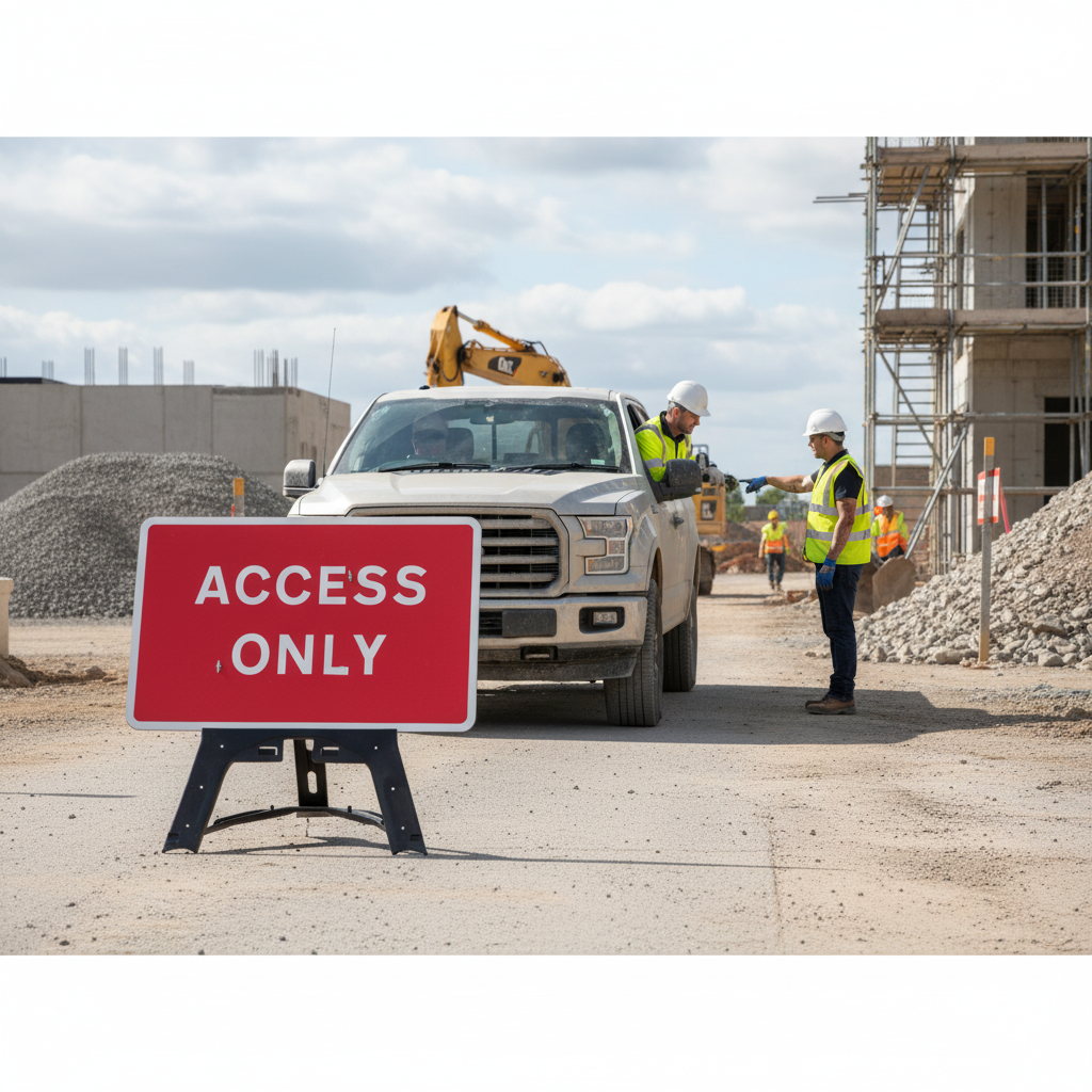 This Professional Access Only Sign Kit is ideal for deployment on private sites, effectively indicating to road users that they should not proceed past the sign unless specifically accessing something beyond it. This sign is particularly useful at locations and events where there may be a delivery or trade entrance that the general public should not access.