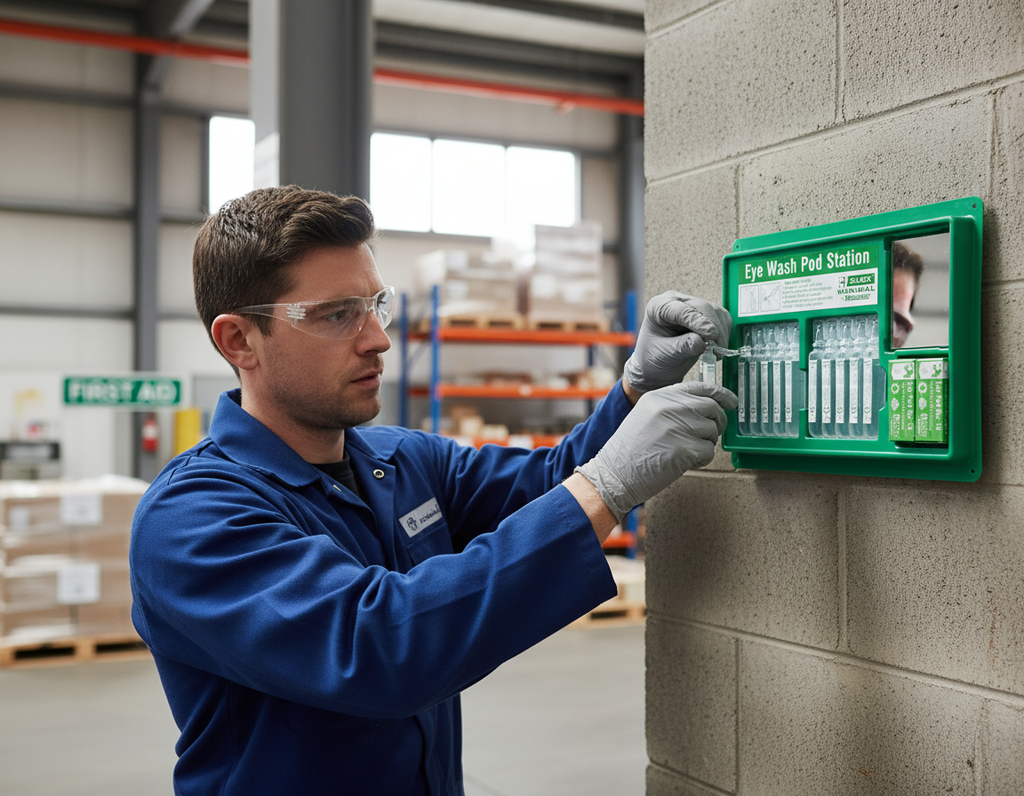 Q: Is the eye wash solution sterile?A: Yes, the solution in the pods is sterile and safe for emergency eye flushing.