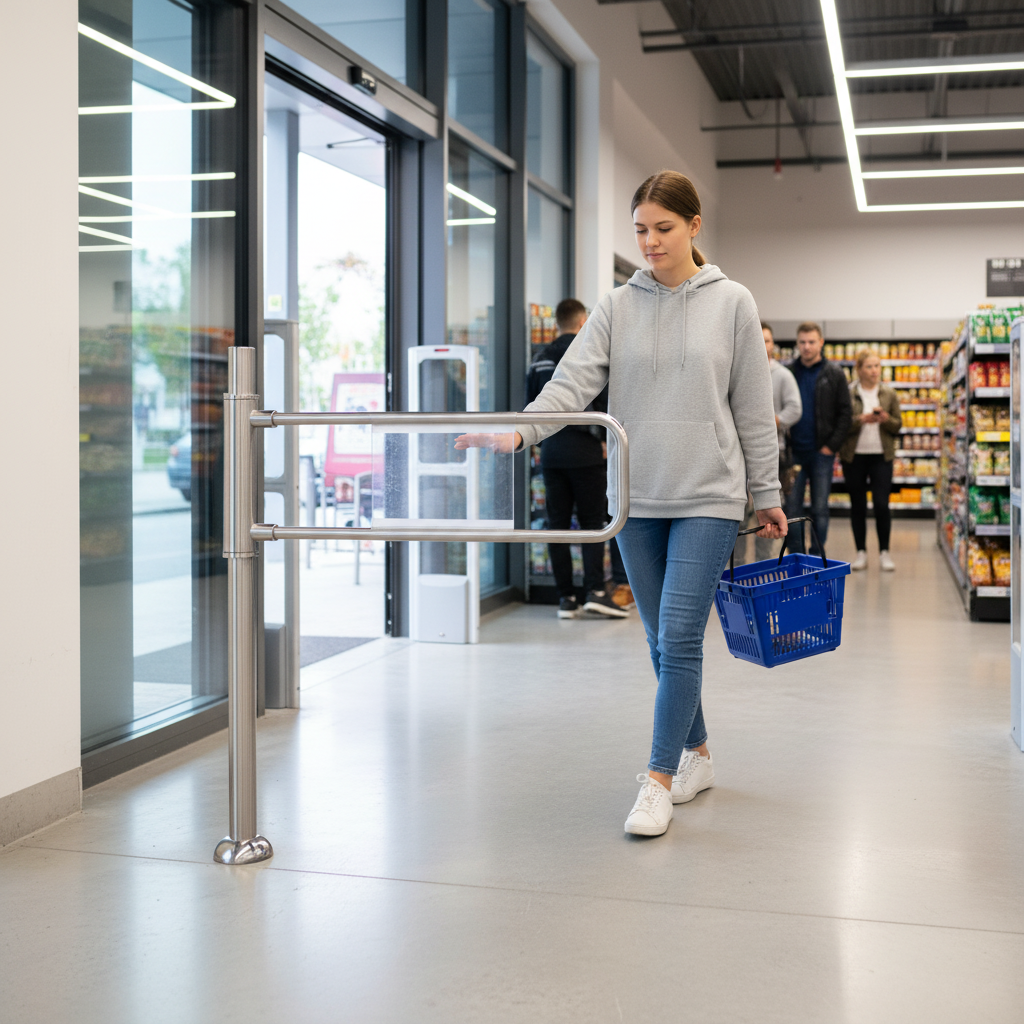 These manual swing pedestrian turnstile gates are commonly associated with supermarkets, but they are much more versatile than this. They have been installed in a variety of environments, including: