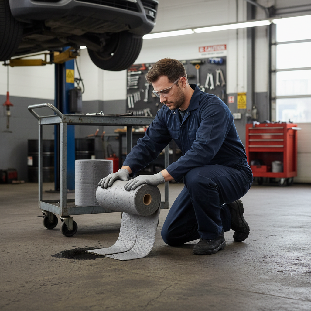 This absorbent roll is safe for use on all non-hazardous workshop liquids including oil, coolant, solvent, and cleaning solutions. -