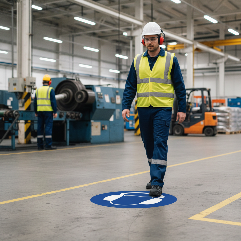 This floor sign is ideal for any facility prioritizing employee wellbeing and accident prevention. It serves as a constant visual reminder to wear ear protection and maintain workplace standards.