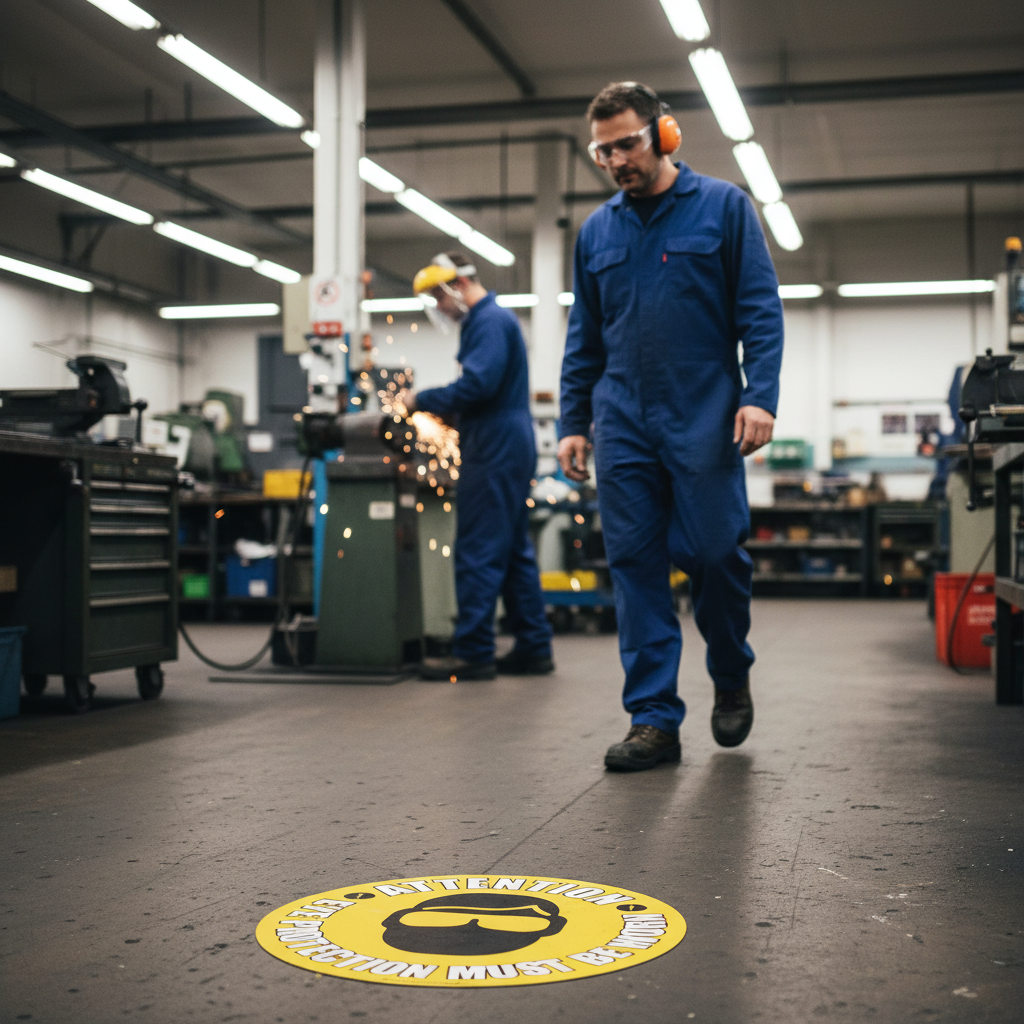 Ensure workplace safety with this Premium Floor Sign featuring a clear message, 'Eye Protection Must Be Worn.' Designed for high visibility, this sign is ideal for reinforcing critical safety protocols in various environments.
