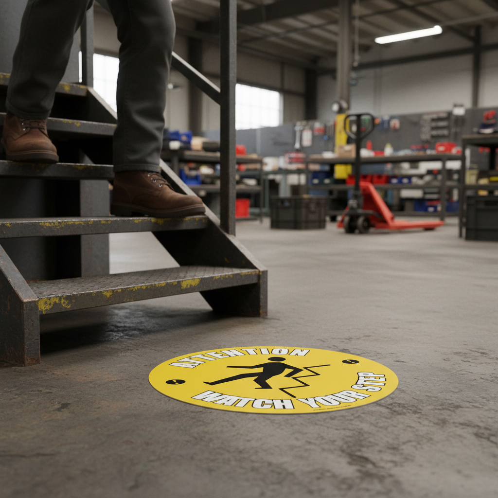 The Premium Slip-Resistant Floor Sign - 430mm Attention Watch Your Step delivers essential workplace safety messaging with professional clarity. Crafted from high-quality, slip-resistant vinyl, this durable sign withstands heavy foot traffic and maintains visibility over time. The self-adhesive backing enables quick, hassle-free installation on floors, walls, and sealed surfaces—simply clean the area, peel, position, and press from the center outward to eliminate air bubbles. Perfect for reinforcing critical safety protocols and reducing workplace accidents, this sign serves as a constant visual reminder to your team. Ideal for any facility prioritizing staff protection and compliance.