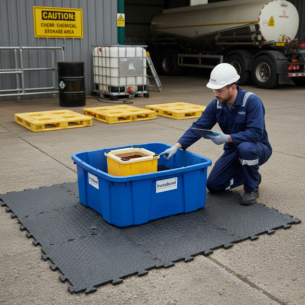 By using this ground mat, you can reduce the risk of puncture from sharp stones and provide extra stability when moving machinery. This is crucial for ensuring a safe working environment where spills are managed effectively.