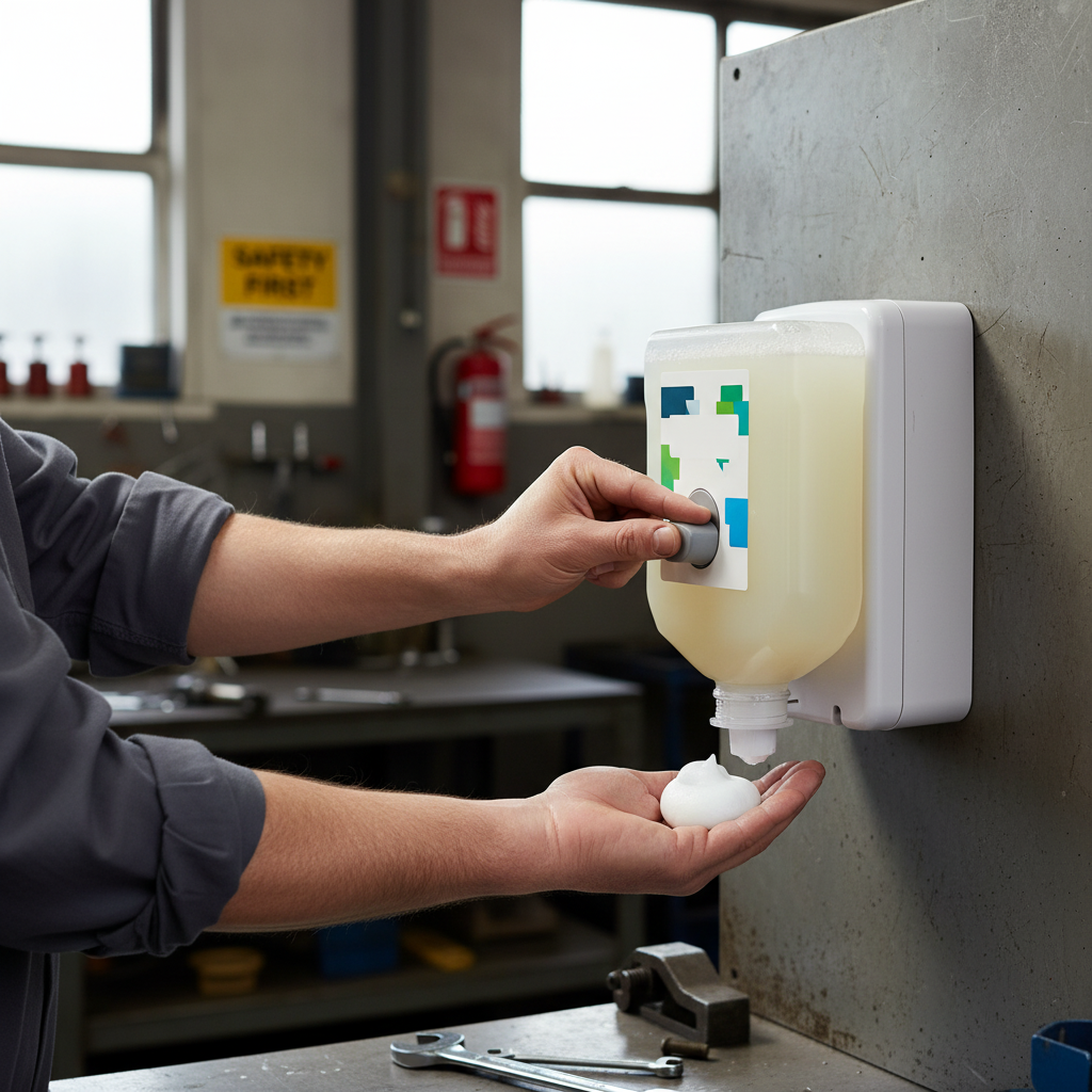Apply one dose of foam to dry hands, rub together until clean, and rinse thoroughly with water. Ideal for frequent use in industrial environments where cleanliness is crucial.