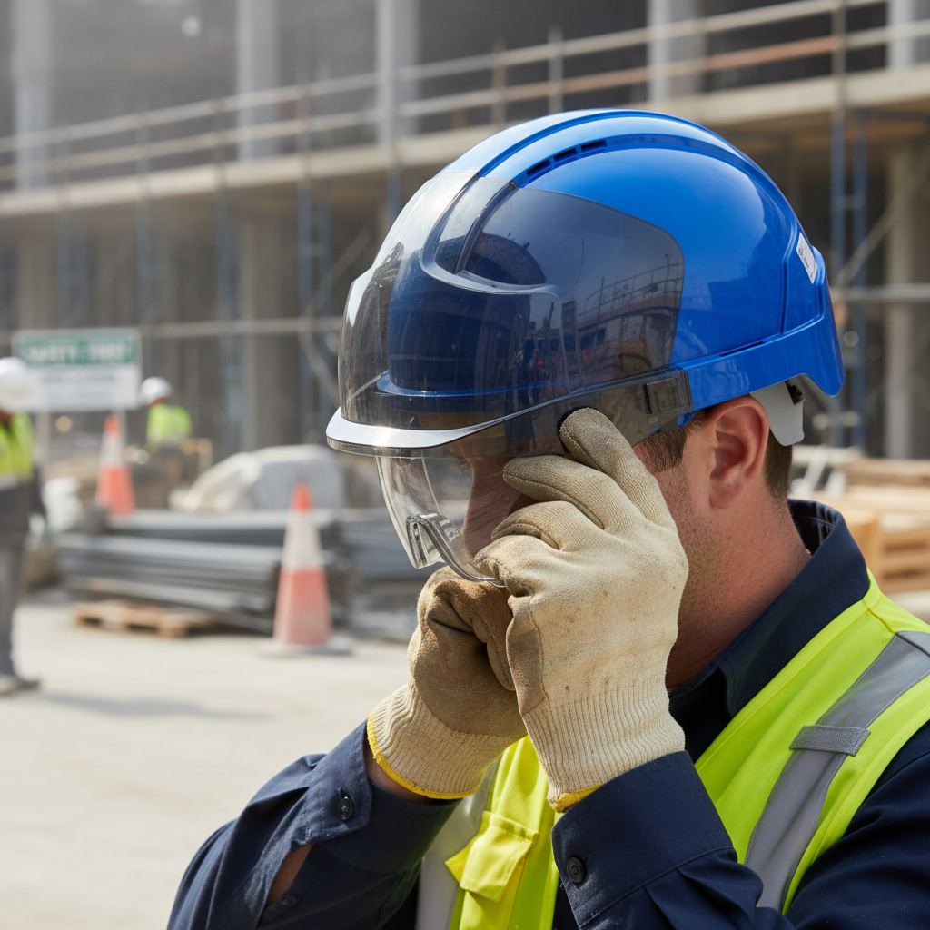 The Premium Wheel Ratchet Safety Helmet represents a revolution in helmet design. This helmet comes supplied complete with a pair of integrated safety glasses that can be safely stowed away within the helmet shell, protecting them from scratches when not in use and ensuring that you will seldom forget them.