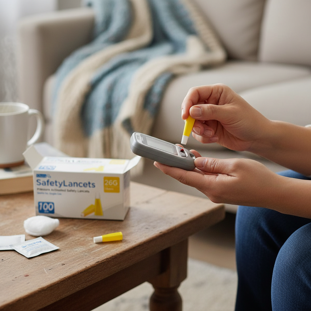 Premium Safety Lancets 26G - Sterile Single-Use Blood Sampling for Home and Professional Use, Pack of 100