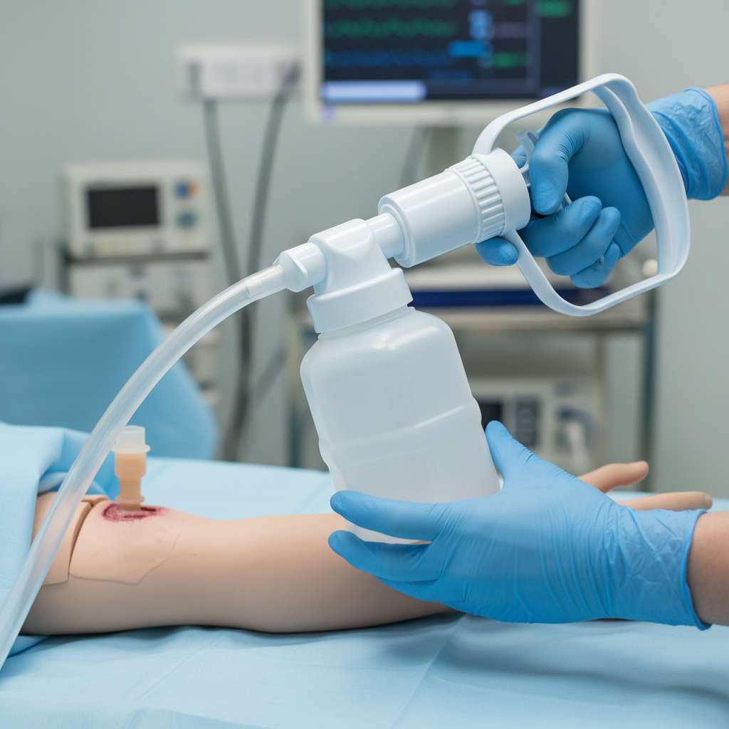 The Premium Single-Use Suction Device is designed for safety and convenience in medical applications. This manual, handheld suction device is completely single-use, eliminating the risk of contamination. Each device is supplied with a 300ml canister, an adult catheter, a paediatric catheter, and a self-seal disposal bag featuring a bio-hazard label for easy disposal.
