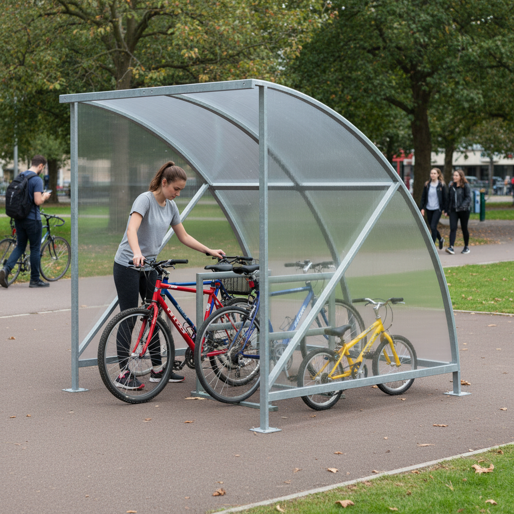 This premium slimline cycle shelter is designed to accommodate up to 4 adult bicycles, providing excellent protection against all weather conditions. Constructed from high-grade materials, it is ideal for various applications including schools, local authorities, commercial spaces, and residential developments.