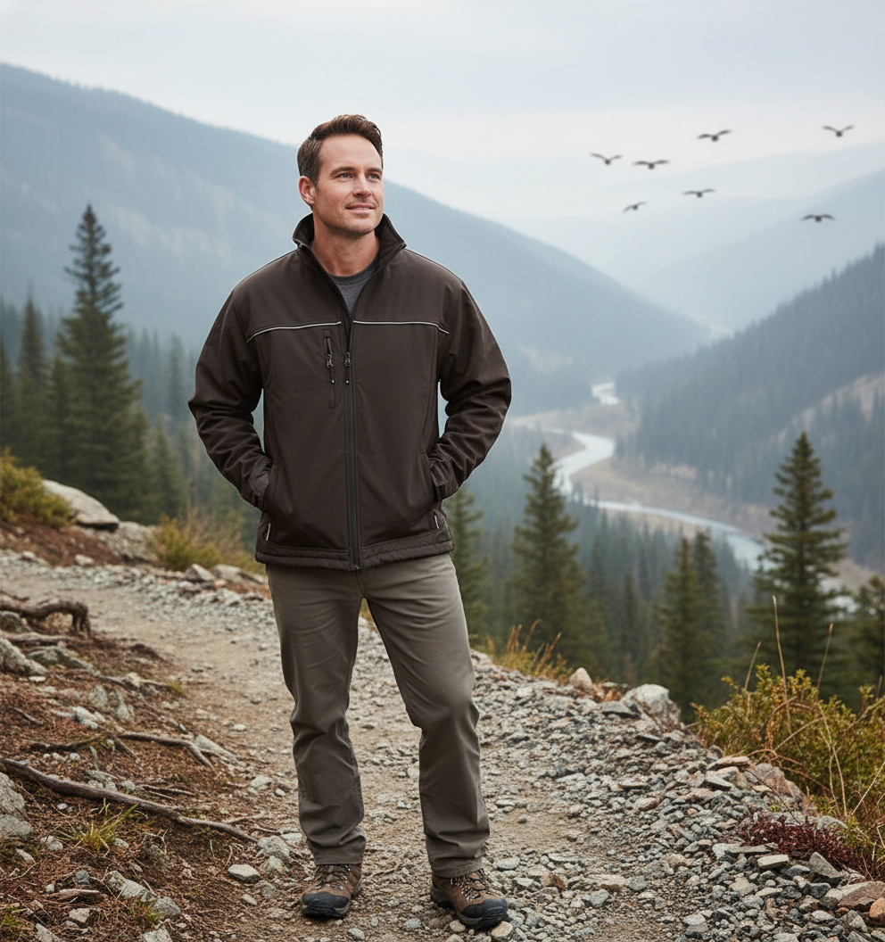 The Premium Soft Shell Jacket is designed for those who seek comfort and protection against the elements. Crafted from high stretch, water-resistant, and windproof fabric, this jacket ensures you stay warm and dry in various weather conditions. The fleece lining adds an extra layer of warmth, making it suitable for outdoor activities in cooler climates.