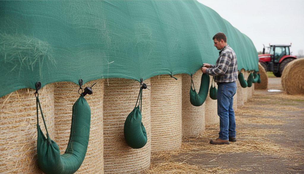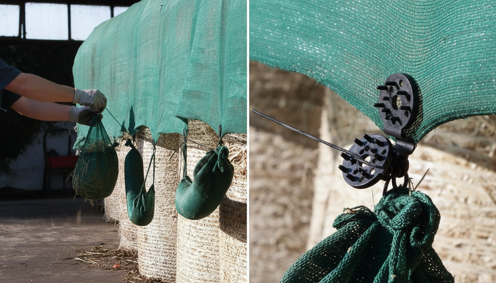 By fixing gravel bags with StackPack Clips at regular intervals, you can effectively anchor sheets and covers, enhancing stability and offering a more economical storage solution. The gravel bags can be easily hung from the clips using durable cable ties.