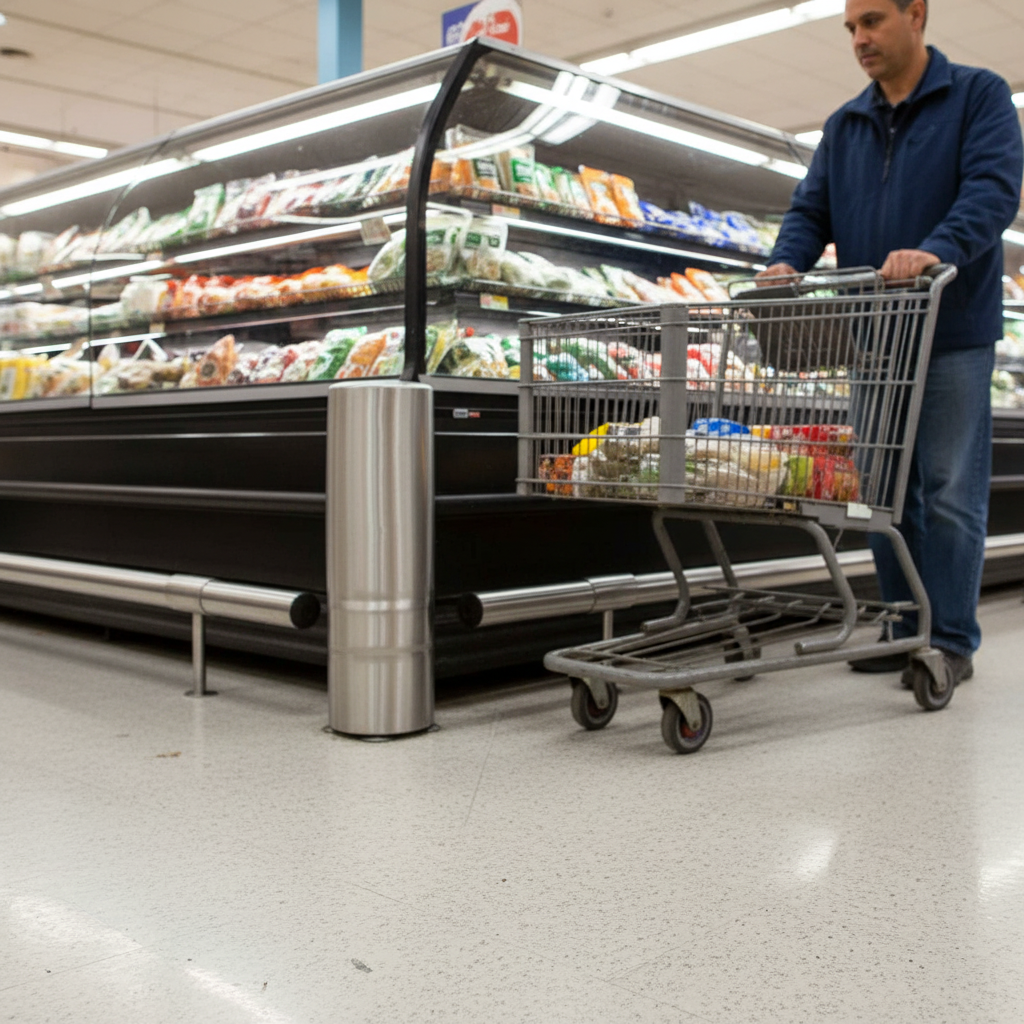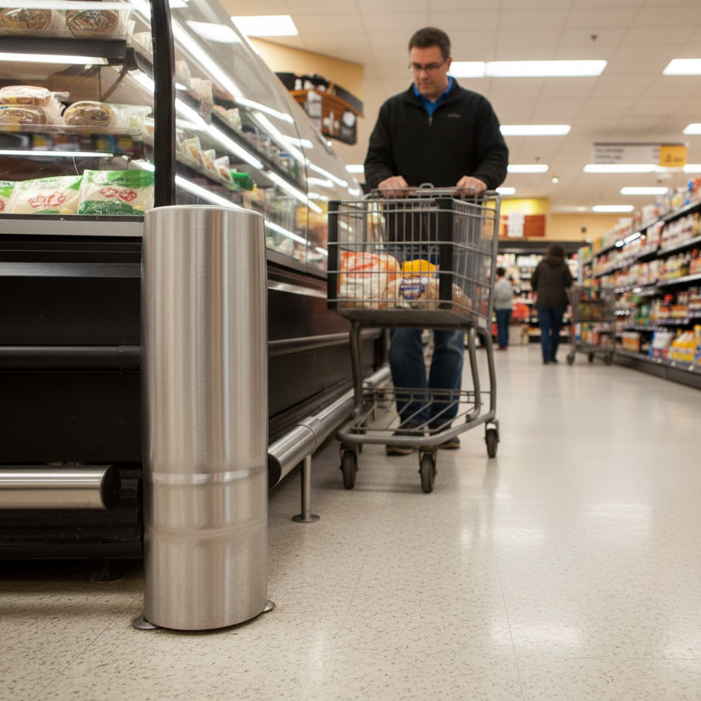 Our Premium Stainless Steel Cabinet Corner Guard is specifically designed to safeguard your fixtures from damage caused by customer and store traffic. This corner guard fits snugly against refrigeration units, serve-over counters, and low-level shelving. Its robust design ensures durability and long-lasting protection.