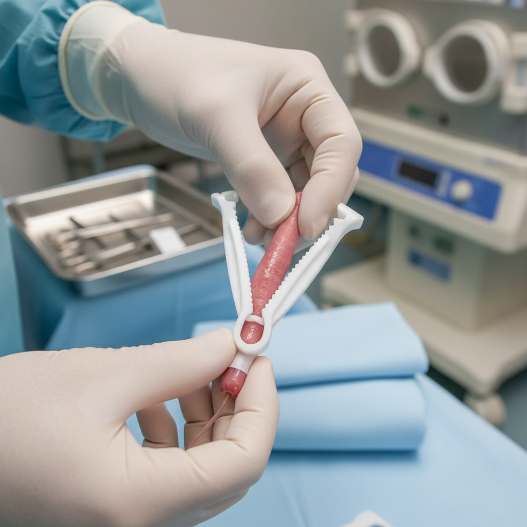 The Premium Sterile Umbilical Cord Clamp is designed for safe and effective cord management during childbirth. Each clamp is individually wrapped to ensure sterility, providing peace of mind for healthcare professionals and new parents alike.