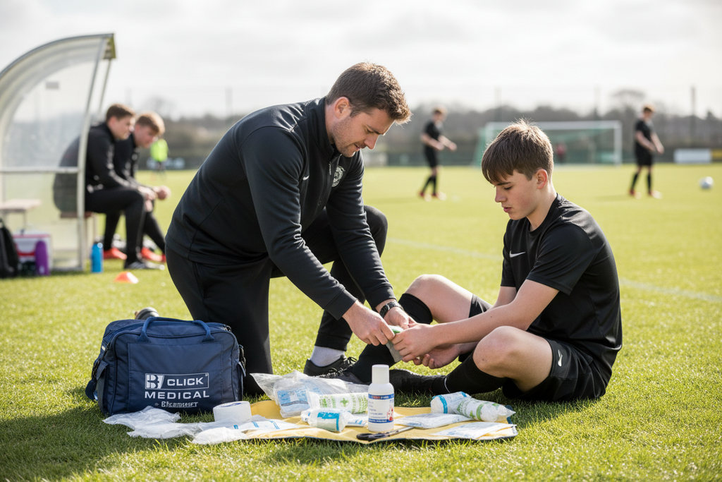Each item in this first aid kit is selected to ensure the best possible care for injuries sustained during sports activities. It is essential to regularly check the contents and replenish as needed.