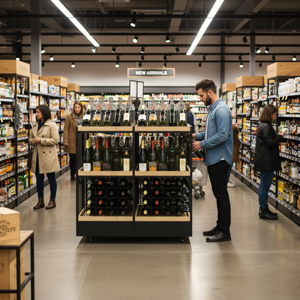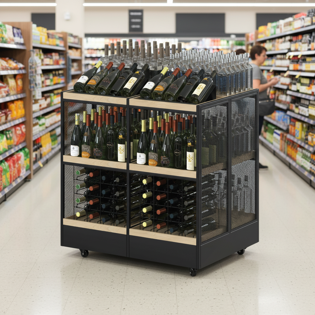 The Premium Wine Display is a great space-effective way to show off your wines and special offers. Enhance your alcohol displays with this multifunctional unit crafted to add versatility and style to your store. Ideal for presenting your premium selections and emphasizing key product launches, this display merges elegance with functionality.