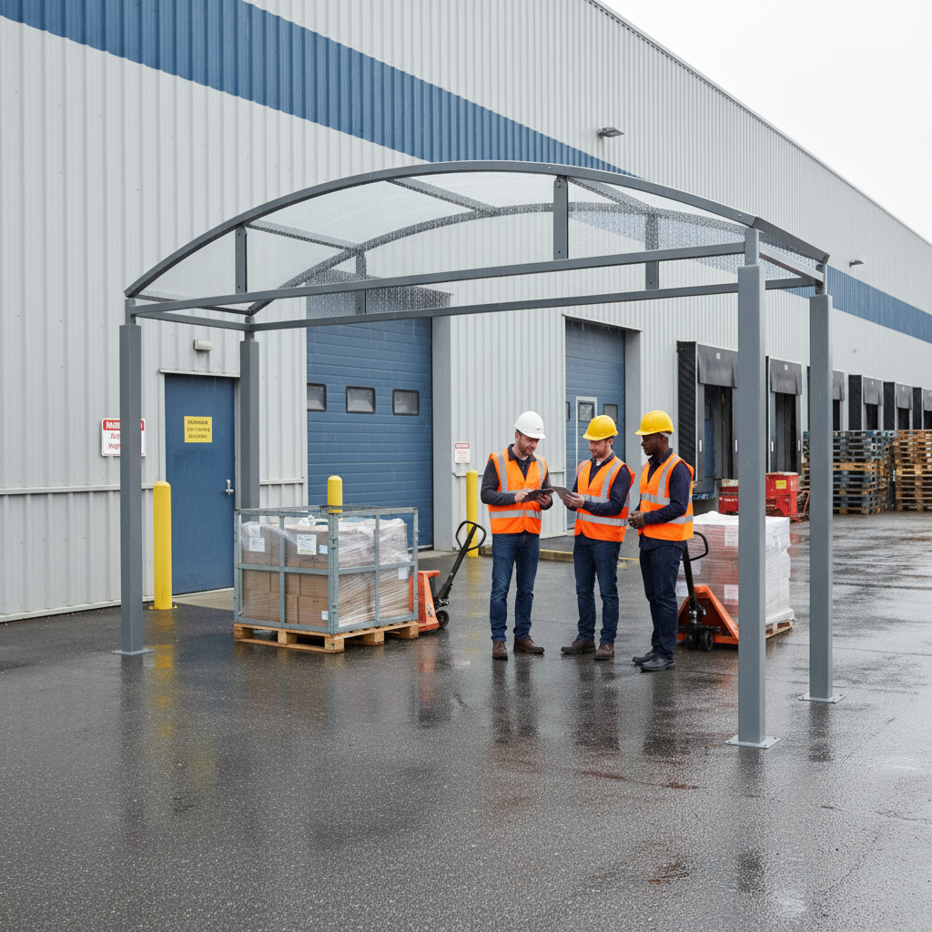 The Premium Walkway Canopy Shelter is an independent, open-sided structure designed for on-site assembly. It is constructed from robust galvanized mild steel, ensuring durability and longevity. This canopy features a curved roof made from high-quality 4mm clear PETG sheets, offering protection from the elements while maintaining visibility.