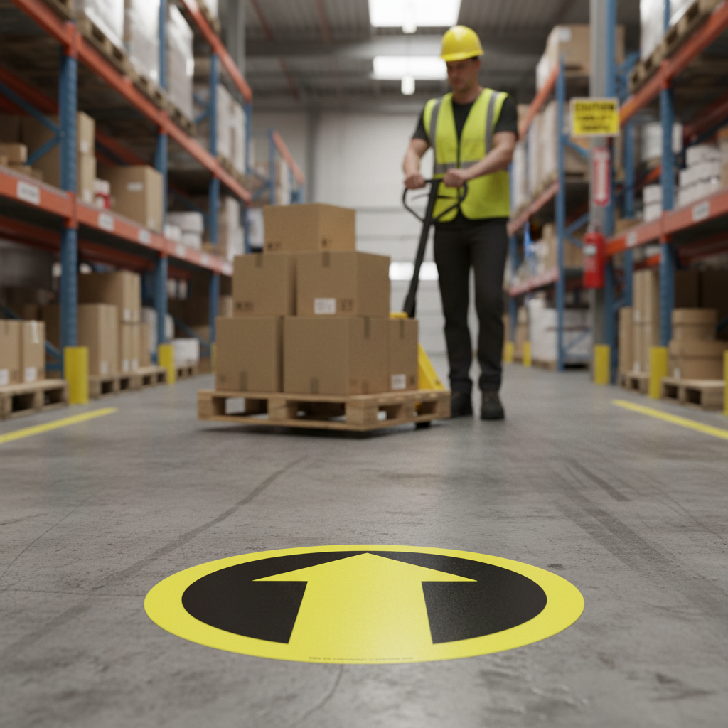 In busy warehouses and distribution hubs, maintaining a steady flow of forklift traffic is critical. These premium yellow directional arrows are designed to indicate the proper direction of travel on warehouse floors, ensuring smooth one-way systems. Ideal for use with floor signs indicating forklift areas, these arrows enhance safety and efficiency.