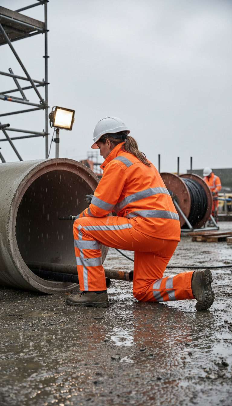 These trousers are constructed from a high-quality fabric blend of 53% PU and 47% PES (FR Trevira CS Polyester), ensuring both comfort and durability.