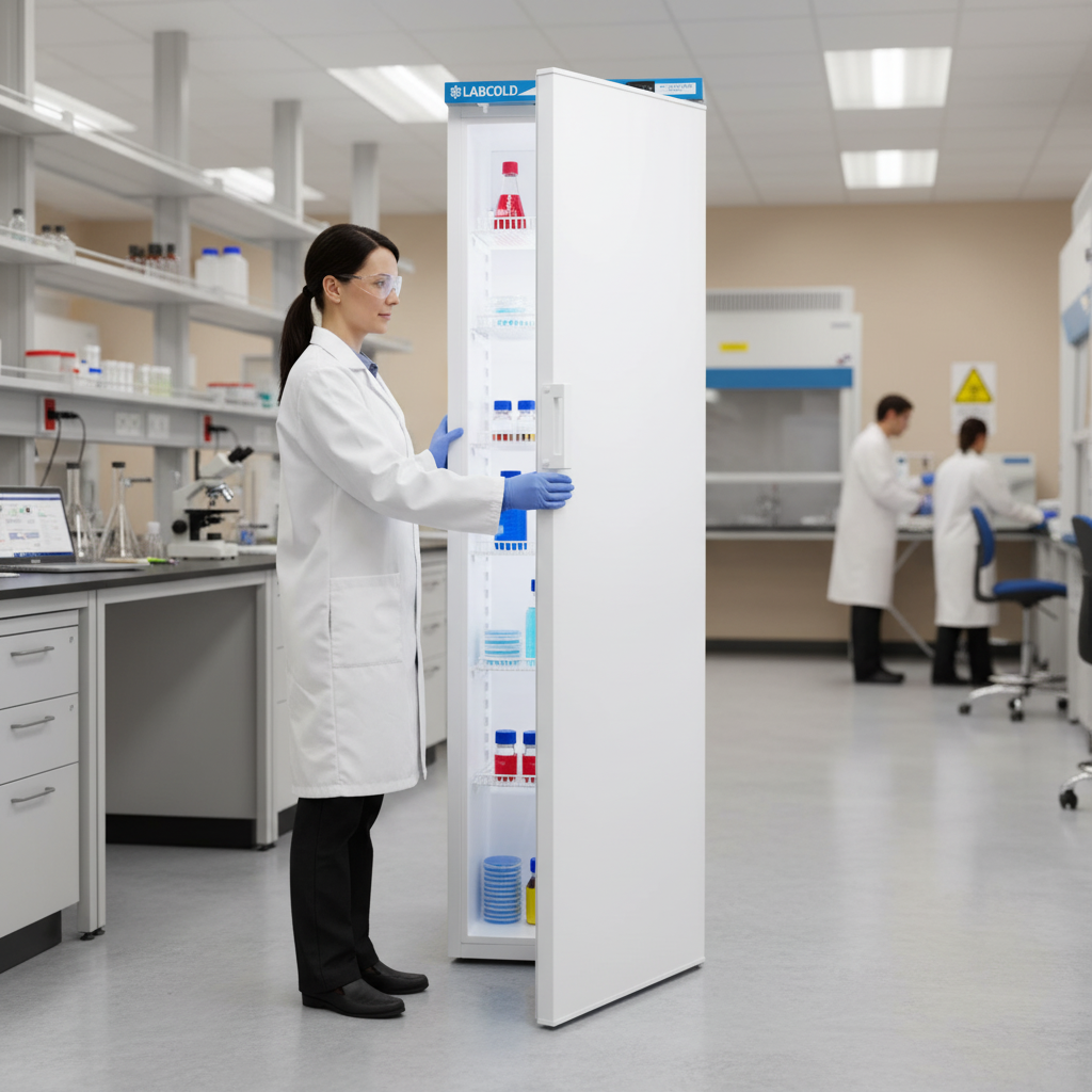 It has high/low temperature alarms and a door open alarm for monitoring safety.