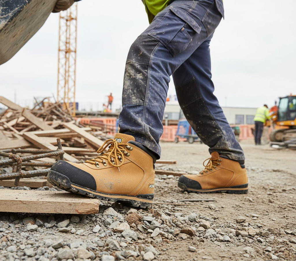 - Dual density rubber sole with SRA slip resistance